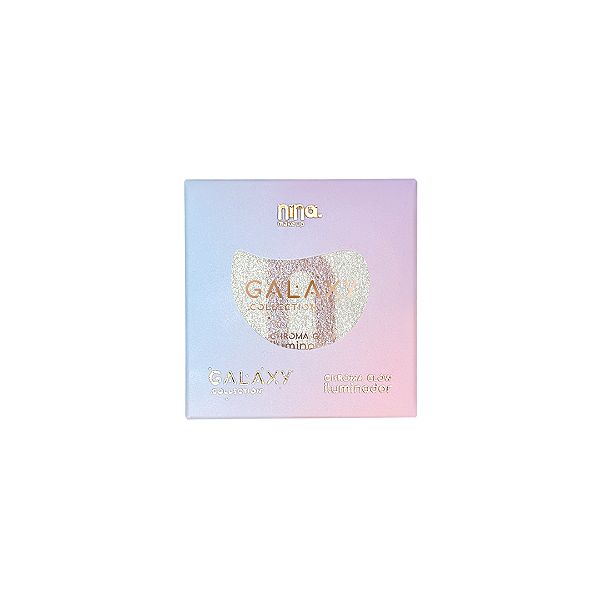 O Iluminador Galaxy Plutão Nina Makeup entrega um brilho holográfico com brilho e fundo perolado, transforma a pele em pura luminosidade.