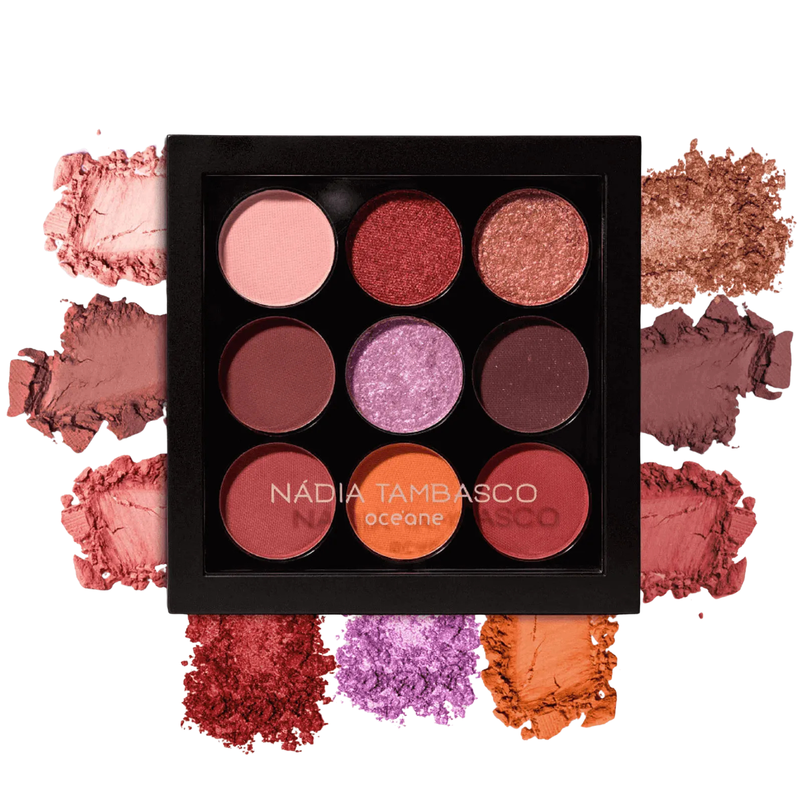 A Paleta de Sombras Go To Fire Nádia Tambasco by Océane é inteira dedicada aos mais variados tons quentes, são 5 tons matte e 4 cintilantes. Perfeita para criar um olhar marcante para todas as ocasiões